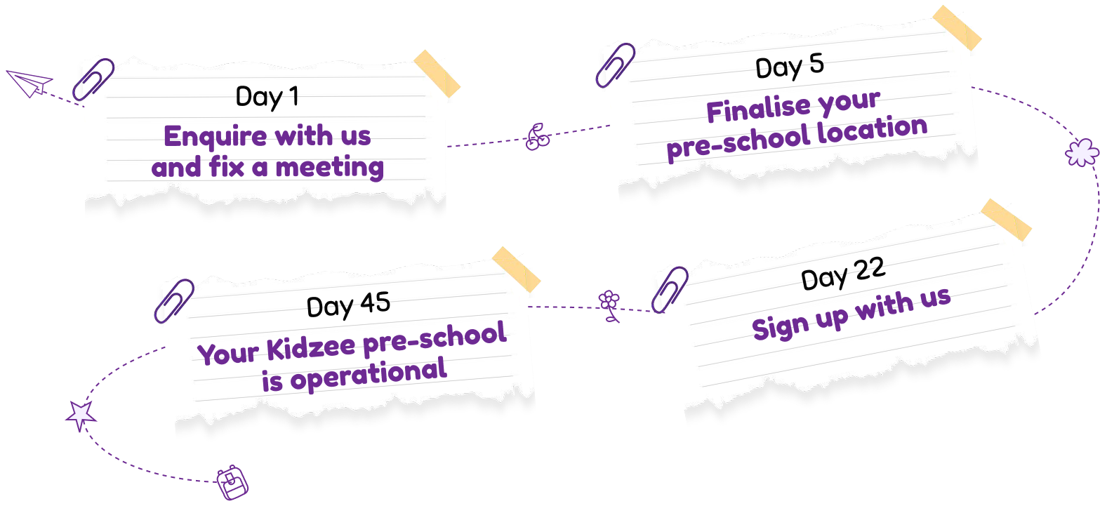 Starting a preschool business requires careful research, planning, and execution. At Kidzee, we offer end-to-end support, including pre-opening assistance, operational guidance, and ongoing business support, ensuring a smooth journey for our franchise owners. Join the Kidzee preschool franchise and be a part of India’s most successful and profitable preschool network.
